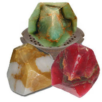 Beautiful gemstones reflected in uniquely scented rock soaps. Add style and sophistication to any decor.
