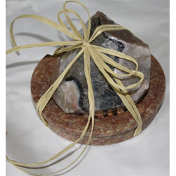 This earthy, stylish soap duo can contain any color Soap Rock to fit any decor! Stone soap dish holds one standard sized Soap Rock soap wrapped up in raffia ribbon. Great gift for ANYONE on your list!